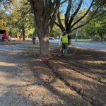 Renewal has begun! Thanks to good weather, contractors are air-spading today on the Boulevard near the Butler campus. This de-compaction, recommended by the City Forester,